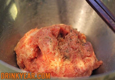 Step 1: Marinate grinded pork with 1 teaspoon salt, a little pepper, 2 teaspoons fish sauce, dried purple onion, mix well and wait about 30 minutes.